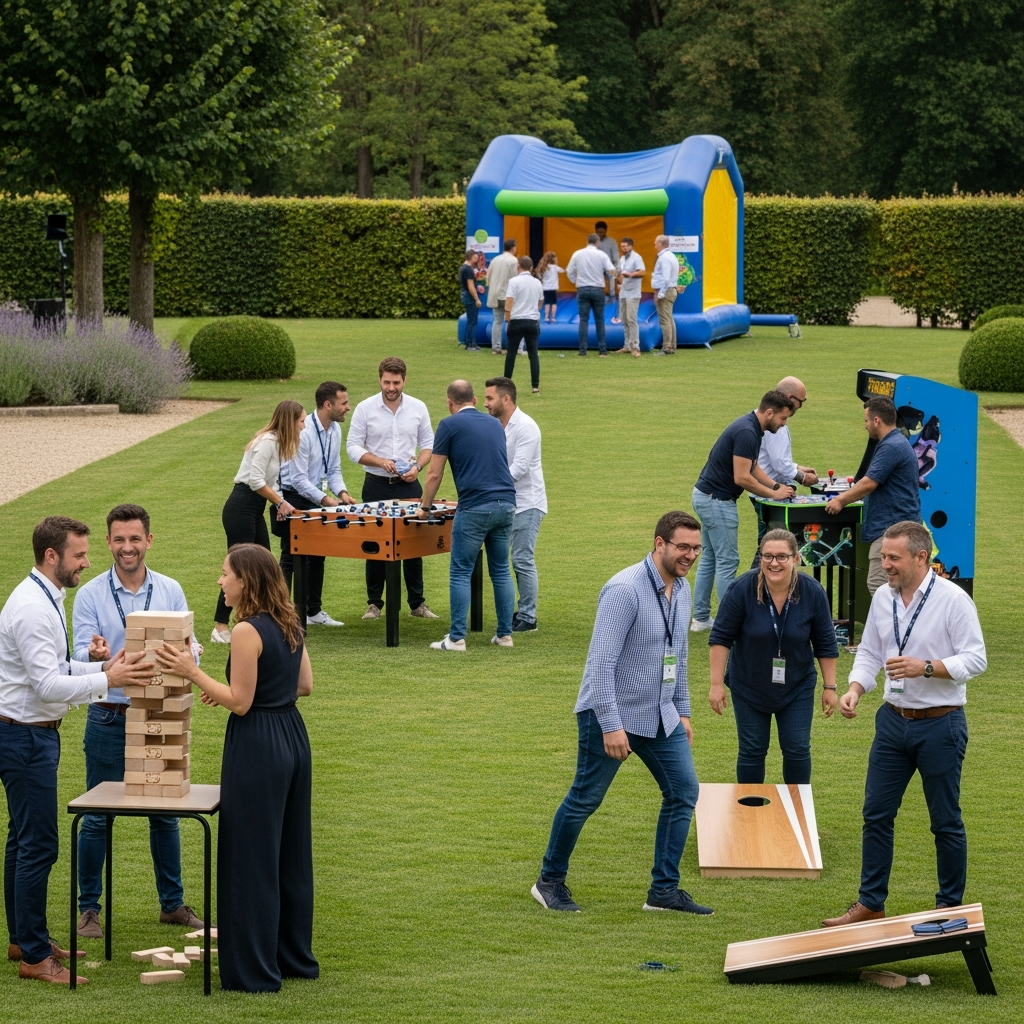 Le choix des jeux doit répondre à la diversité des publics présents. Voici une liste d’animations efficaces pour un événement d’entreprise réussi à Mesnard‑la‑Barotière :