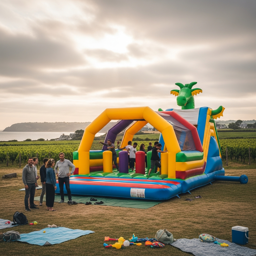Nous organisons la livraison et l’installation depuis notre base en Loire-Atlantique. Délais habituels : installation en moins d’une heure pour un château standard, et jusqu’à deux heures pour une structure XXL ou un parcours. Le démontage est rapide et propre. Nos chauffeurs-livreurs vous confirment l’heure d’arrivée et effectuent un contrôle post-installation avec l’organisateur.
