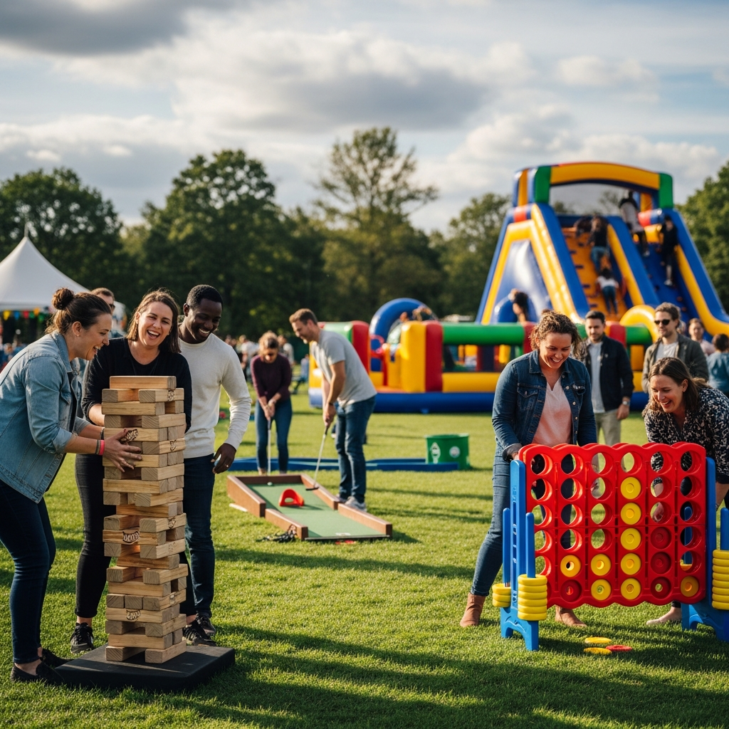 Les jeux géants mêlent nostalgie et convivialité. Ils favorisent l’interaction intergénérationnelle et sont parfaits pour foires, team-buildings ou afterworks. Faciles à disposer sur pelouse ou hall, ils demandent peu de logistique tout en offrant un fort potentiel d’animation.